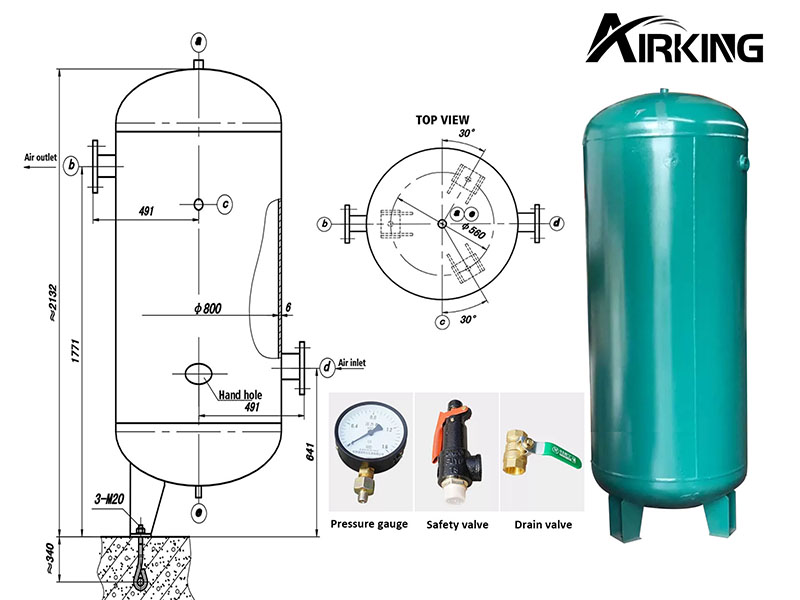 Zbiorniki powietrza mogą przechowywać pewną ilość gazu, a wyjściowe ciśnienie powietrza jest stosunkowo stabilne, a jednocześnie można zmniejszyć drogę powietrza. Temperatura panująca w środku usuwa część wody, kurzu i zanieczyszczeń. Zbiornik powietrza wykorzystuje jako surowce oryginalne materiały, współpracuje z technologią automatycznego spawania.